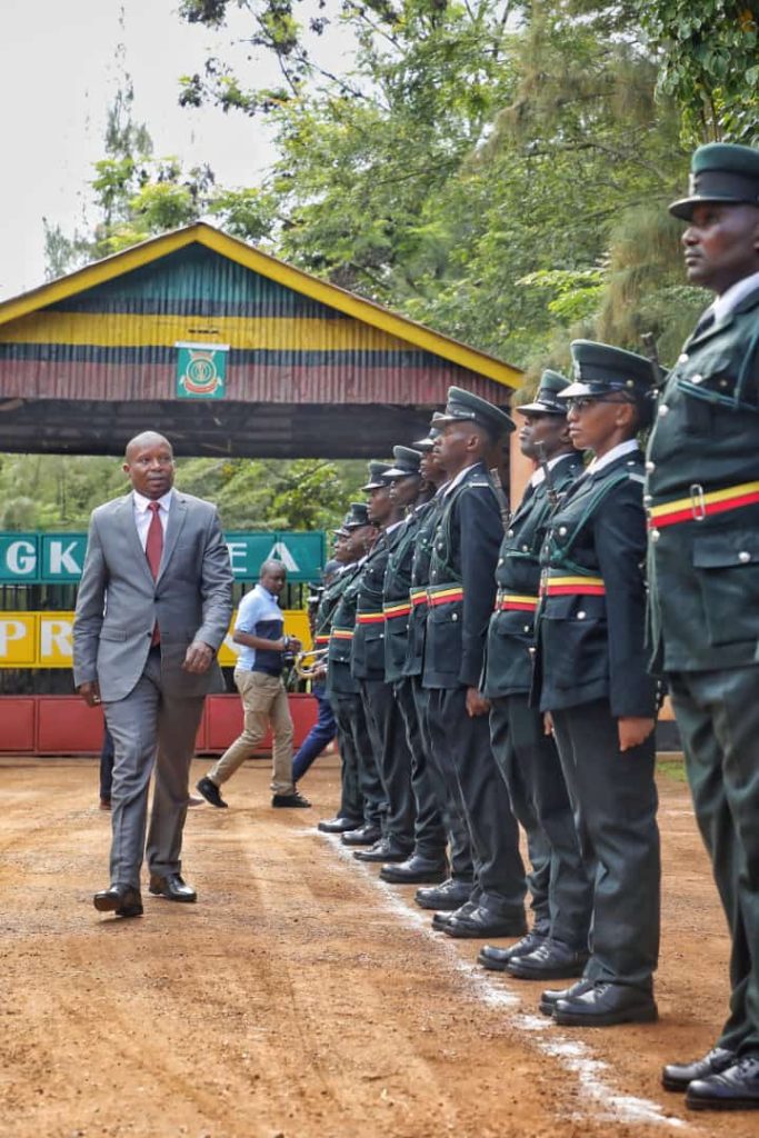 [Pictured]: Interior CS Kithure Kindiki bestowing a badge of honou seer to newly promoted corporal at Mwea Prisons.