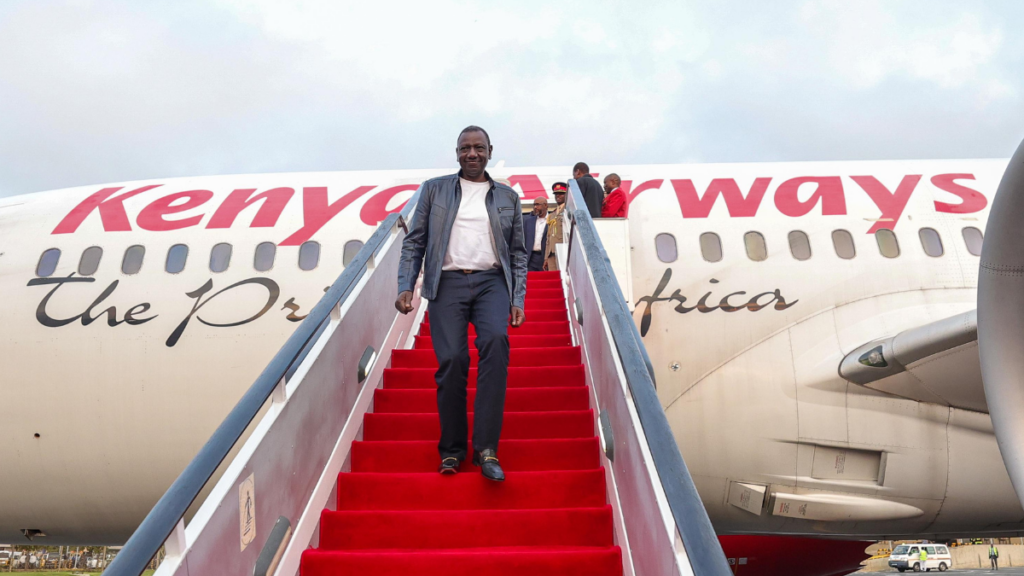 President William Ruto returned to Kenya on Monday, June 17, aboard a Kenya Airways (KQ) flight from Switzerland, aligning with his administration’s commitment to austerity measures aimed at reducing the national debt. This choice marks a contrast to his earlier travel methods, which had stirred public debate.